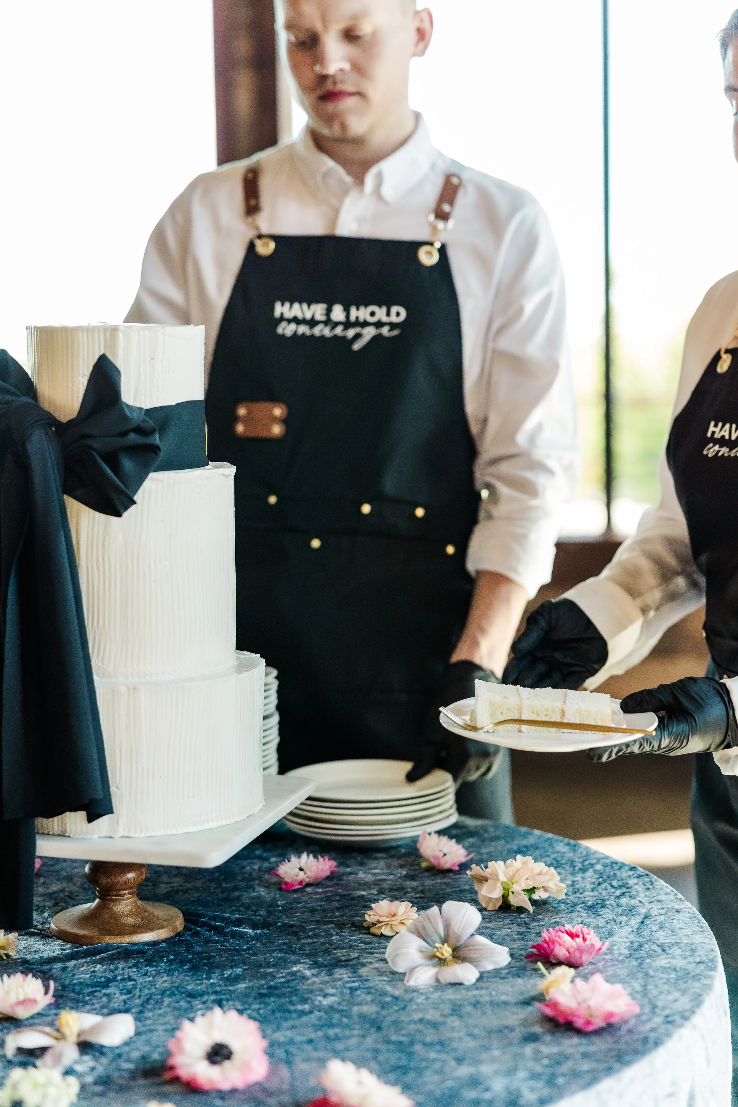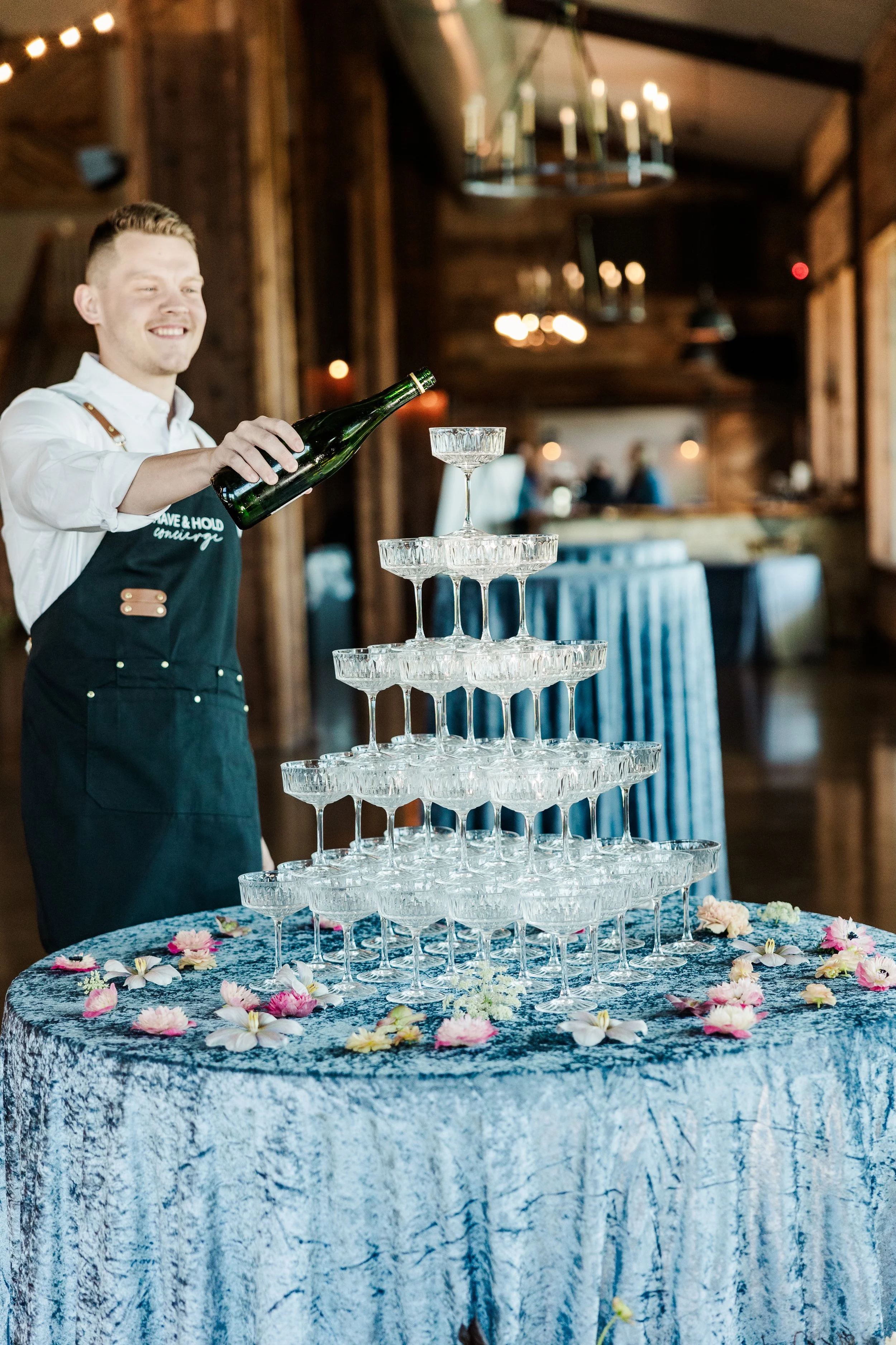 Check out Have and Hold Concierge for champagne towers and cake cutting services!